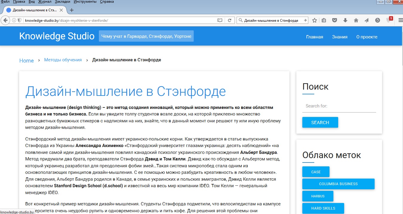 Веб-сайт Knowledge Studio - о том, чему учат в Гарварде, Стэнфорде ...