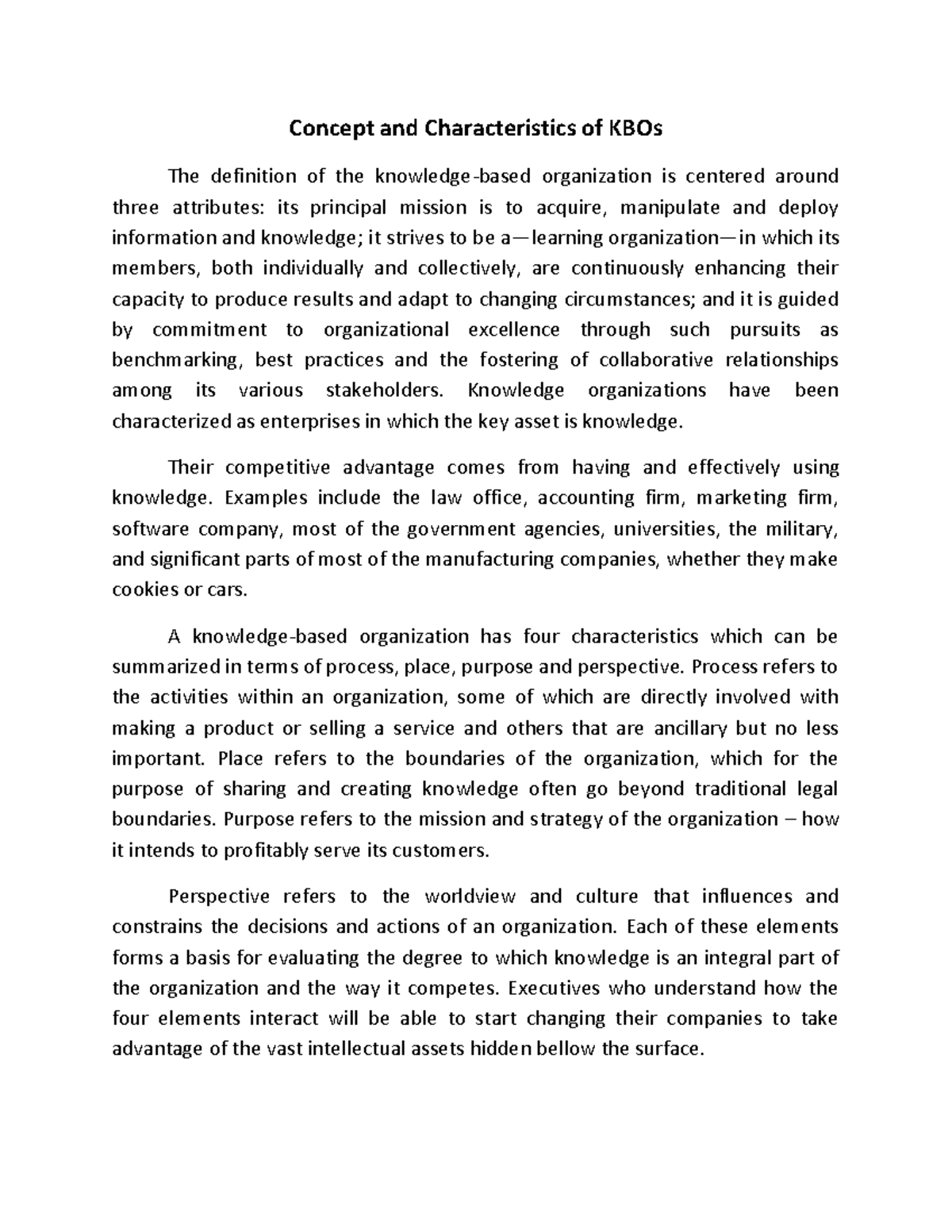 Concept and Characteristics of KBOs - Knowledge organizations have been ...