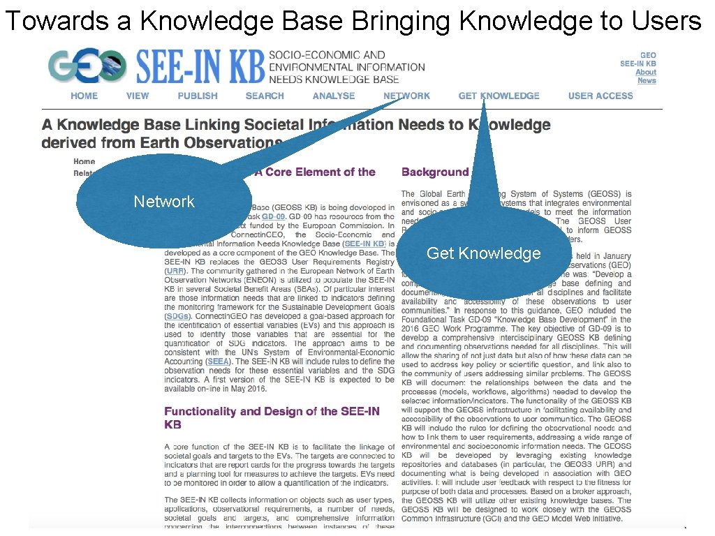Towards a Knowledge Base Bringing Knowledge to Users