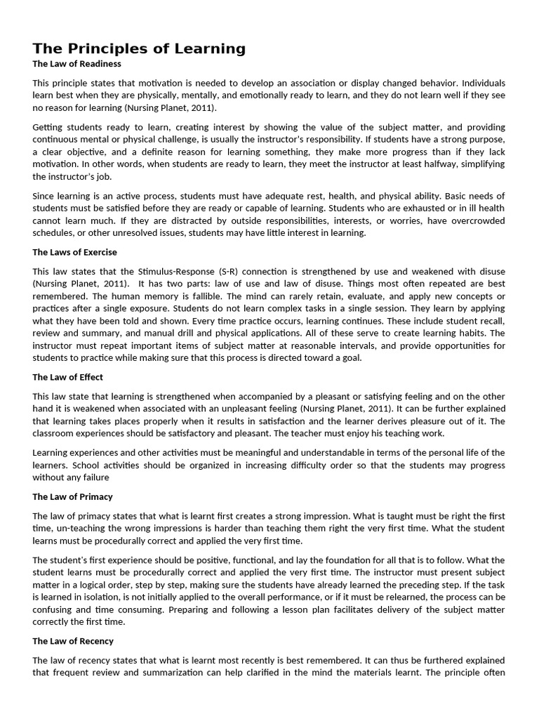 Principles of Learning | PDF | Learning | Experience