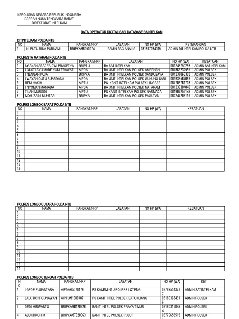 Data Operator Intelkam Polda NTB | PDF