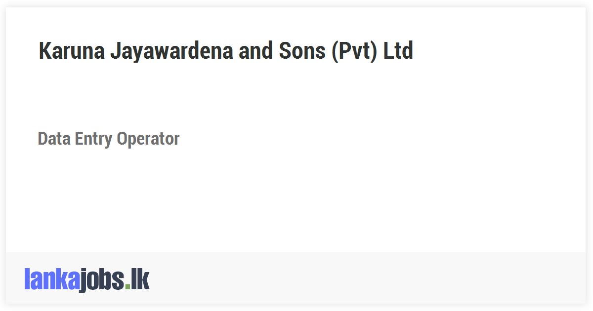 Data Entry Operator - Karuna Jayawardena and Sons (Pvt) Ltd