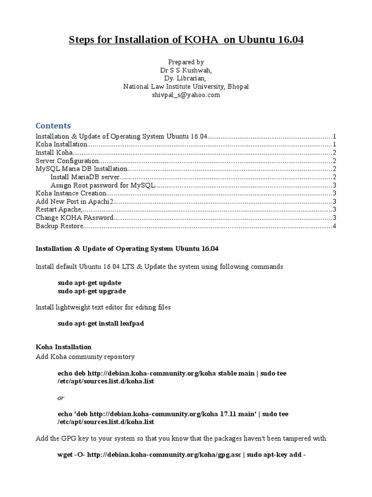 Koha Ubuntu Installation | PDF | Sudo | Databases