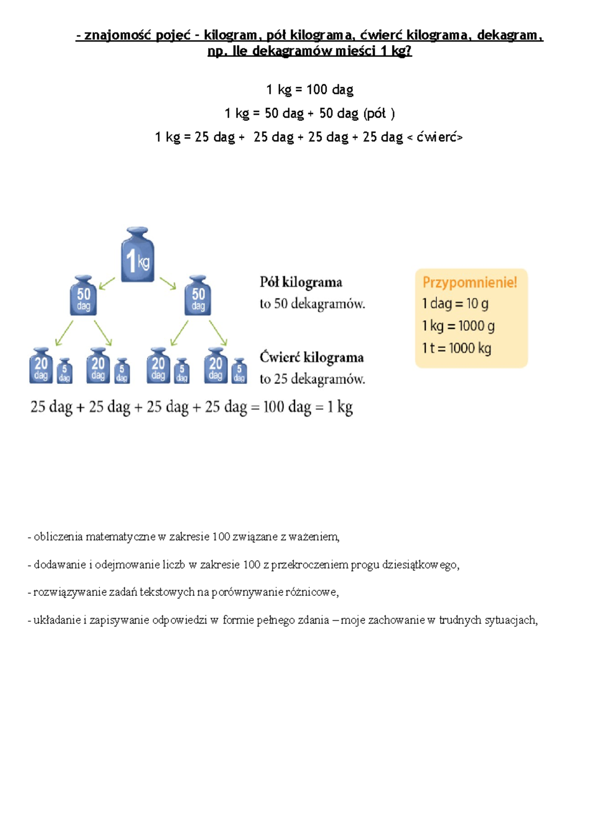 Znajomość pojęć kilogram pół kilograma ćwierć - znajomość pojęć ...