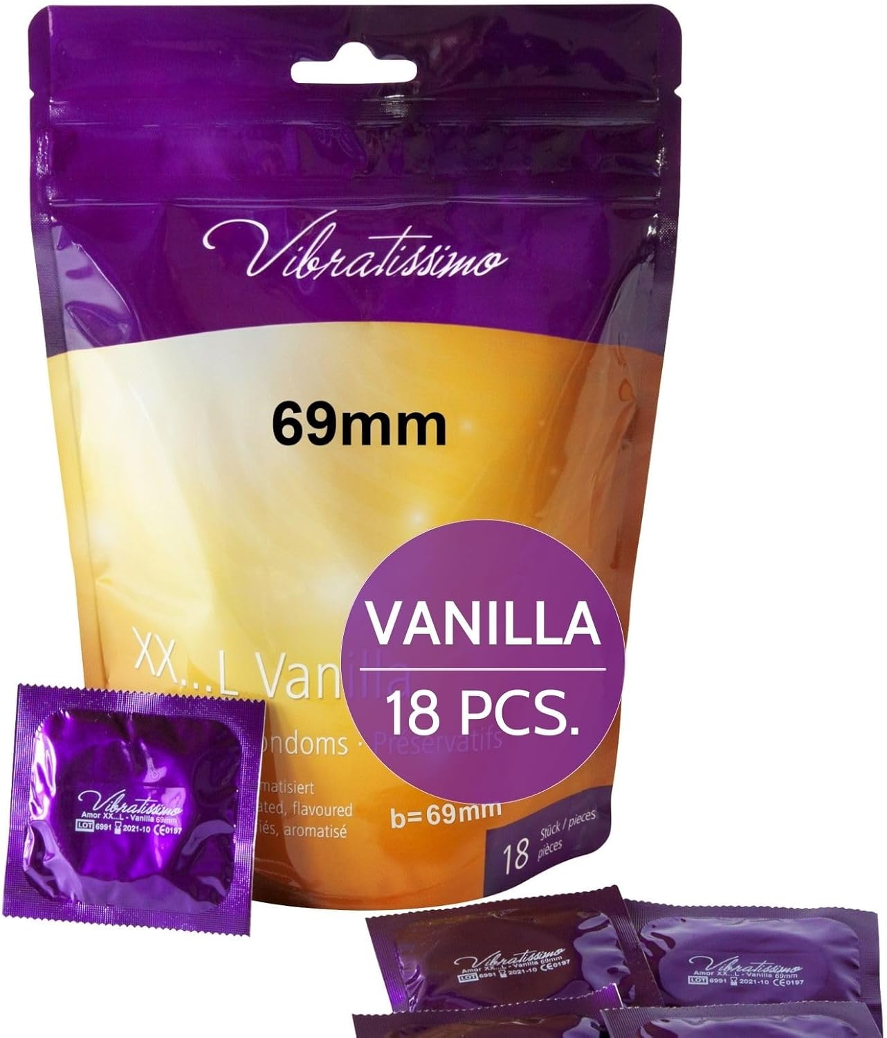 VIBRATISSIMO XXL Vanilla Condoms 18-Pack I Premium with Aroma I Kondoms ...