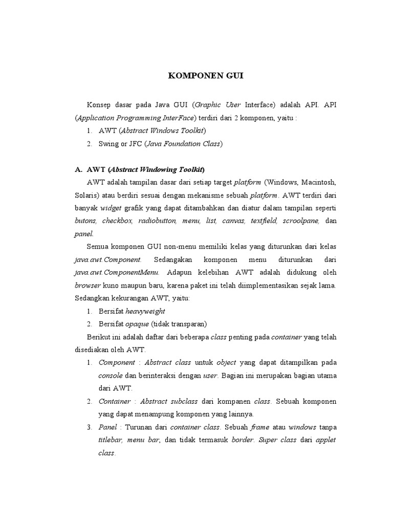 Komponen Utama dalam GUI Java | PDF | Metode & Bahan Ajar | Komputer