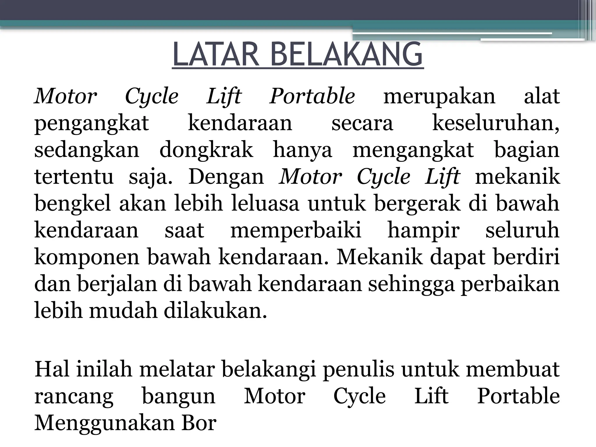 PPT motor cycle lift portable untuk seminar kp | PPTX