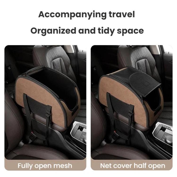 Vehicle Front Seat Center Console Portable Pet Travel Carrier(Beige)