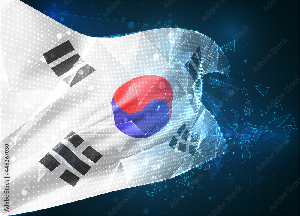 Korea, vector flag, virtual abstract 3D object from triangular polygons ...