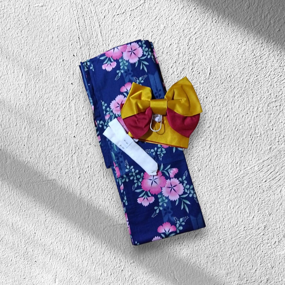 Set of Yukata, Obi Belt, and Two Koshi Himos for Women / Pink Flower ...