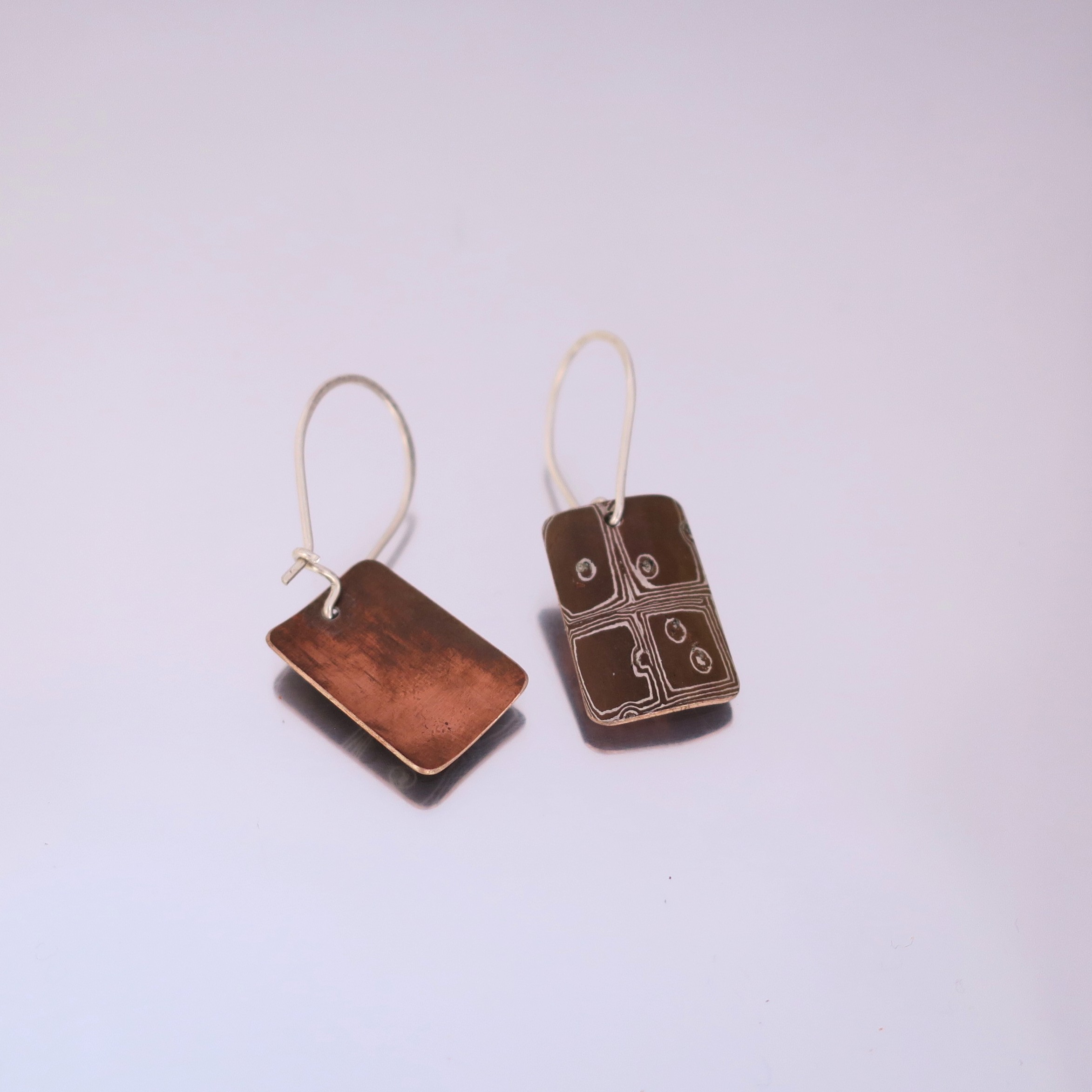 Mokumegane earrings- square ” Koshi” pattern – Yoko Rover Mokume-gane Art