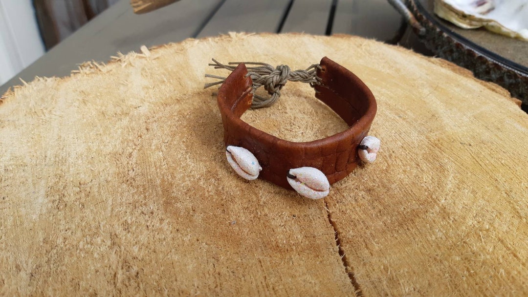 Brown Leather Bracelet With Kauri Shells, Coffee Beans. - Etsy UK