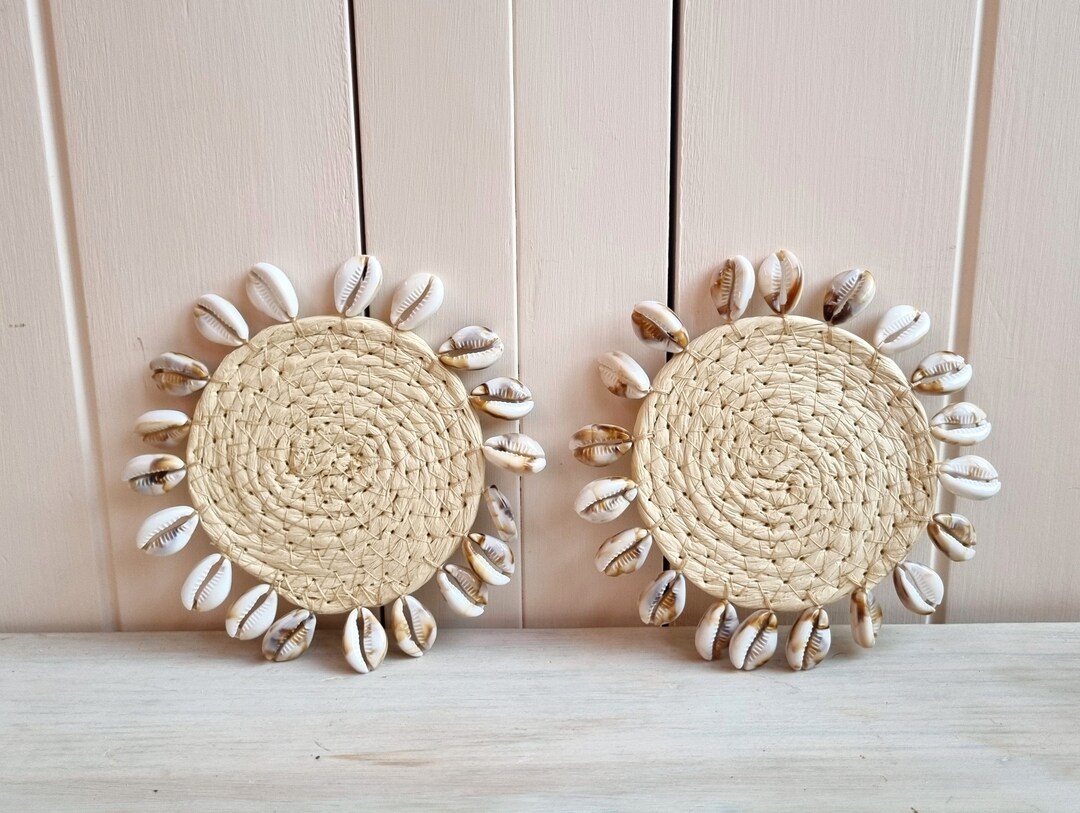 2 Wicker Coasters With Kauri Shells, Coastal Coaster, Decorative ...