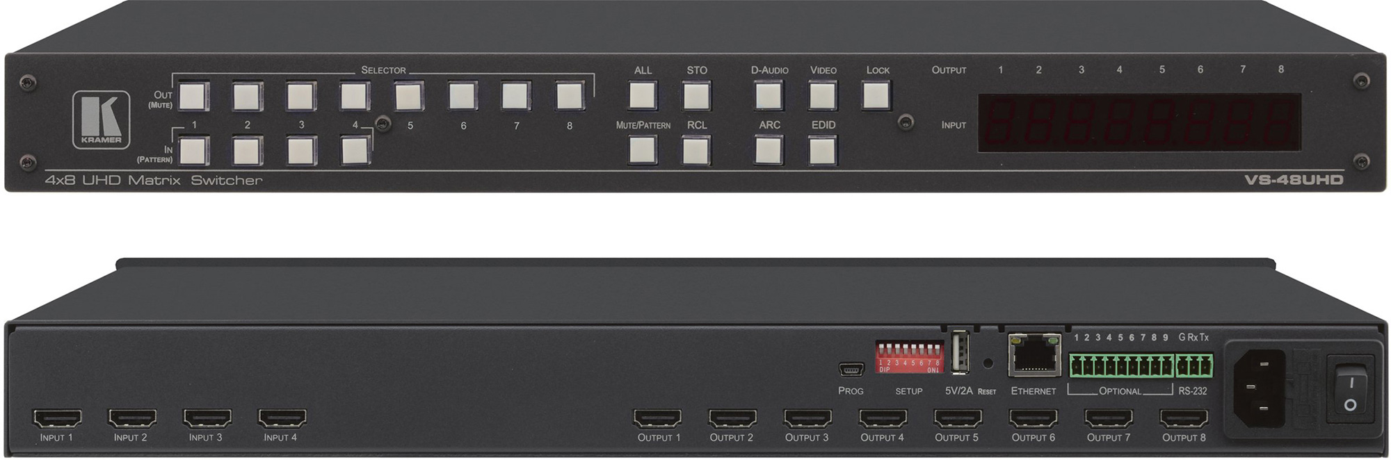 Kramer VS-48H2 4x8 4K HDR HDCP 2.2 HDMI Matrix Switcher with Digital ...