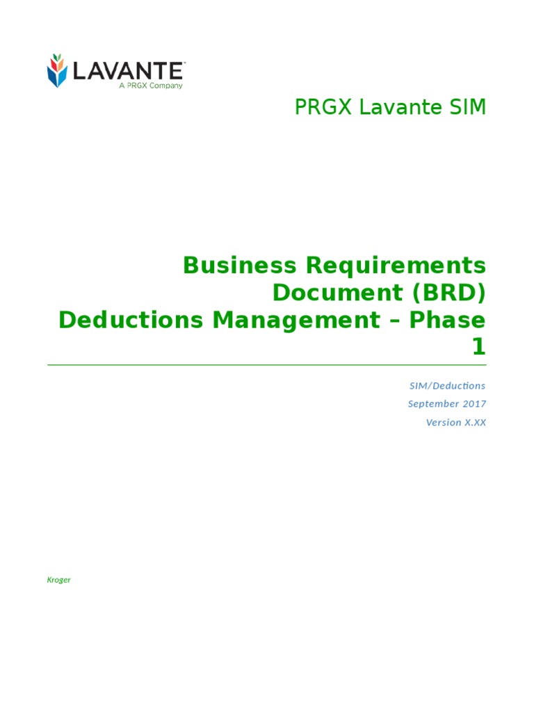 Kroger Deductions Management BRD | PDF | Invoice | Financial Transaction