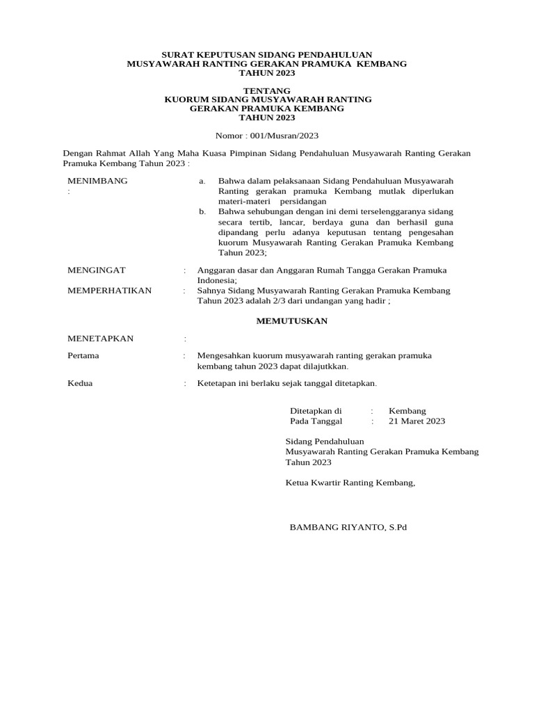 1 Konsideran Kuorum - Surat Keputusan Sidang | PDF