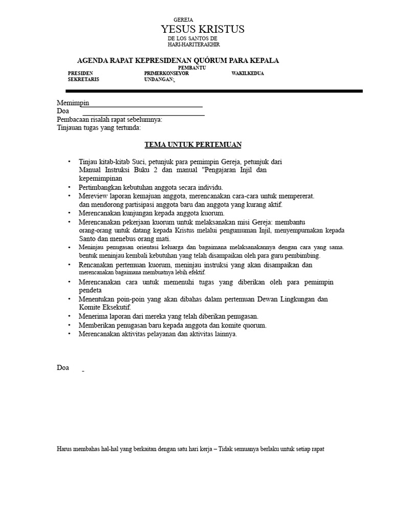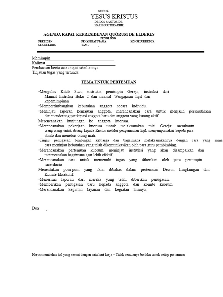 Agenda Rapat Kepresidenan Kuorum para Penatua | PDF