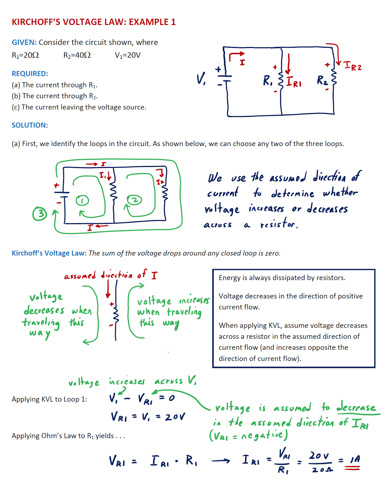 Kirchhoff’s Voltage Law (KVL) Example Problem #1 - YouTube