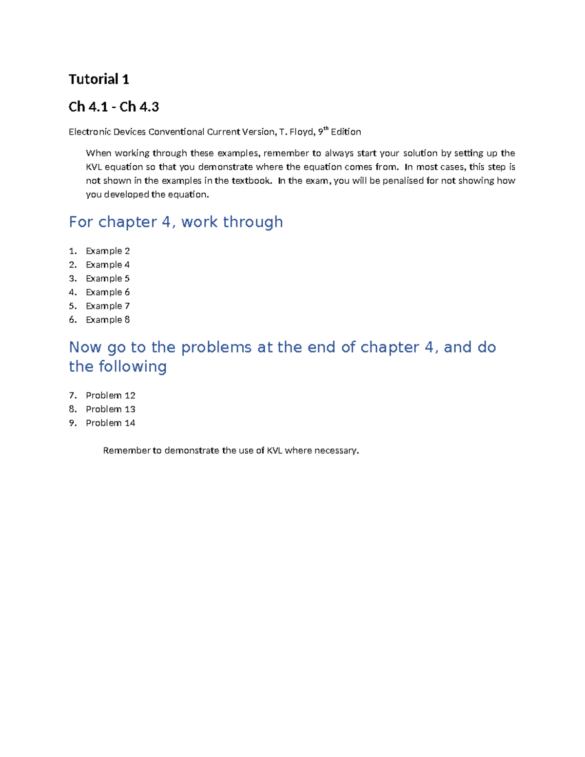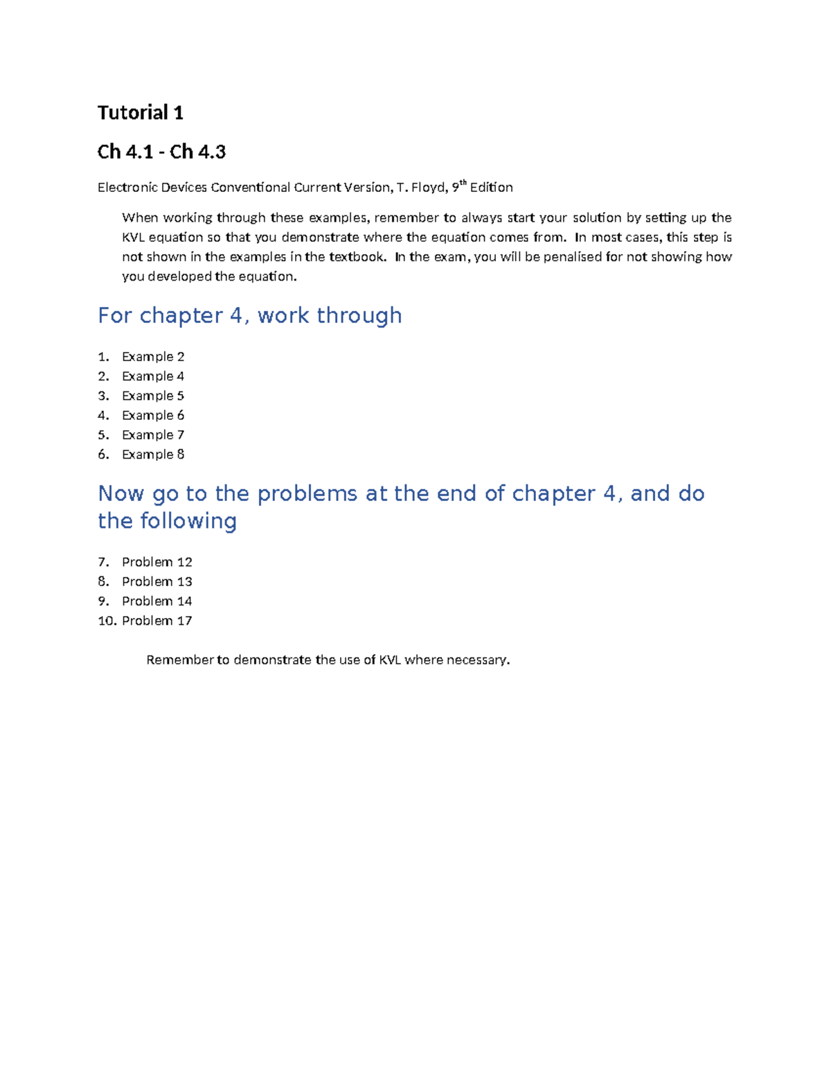 Tutorial 1: Ch 4.1-4.3 Electronic Devices KVL Solutions - Studocu