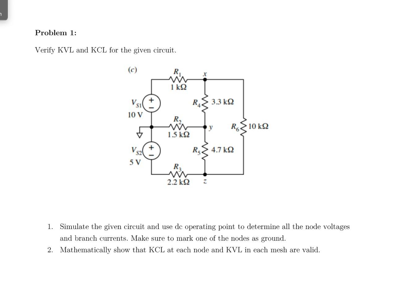 Solved 7 Problem 1: Verify KVL and KCL for the given | Chegg.com