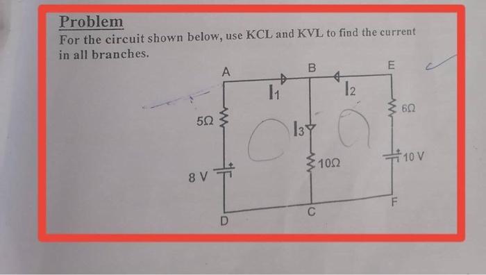 SOLVED: Problem 6: Using KVL, KCL, and Ohm's Law, determine the ...