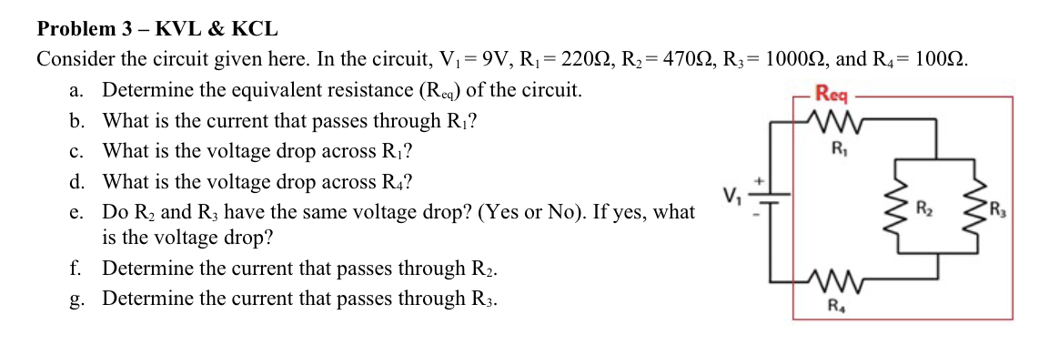Problem 1 Using Ohm's law, KCL, KVL, Voltage Divider and/or Current ...