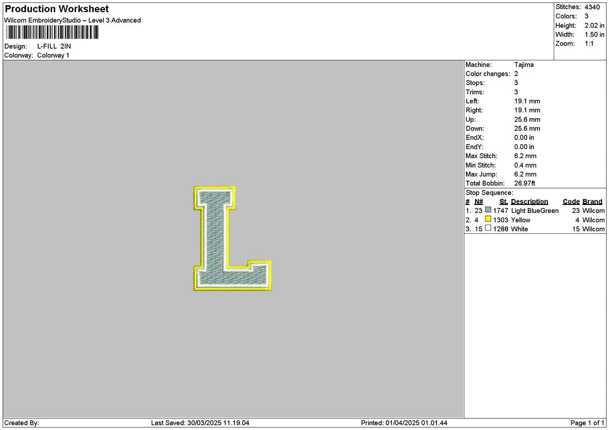 L Fill Embroidery File 6 sizes – Master Digitizer