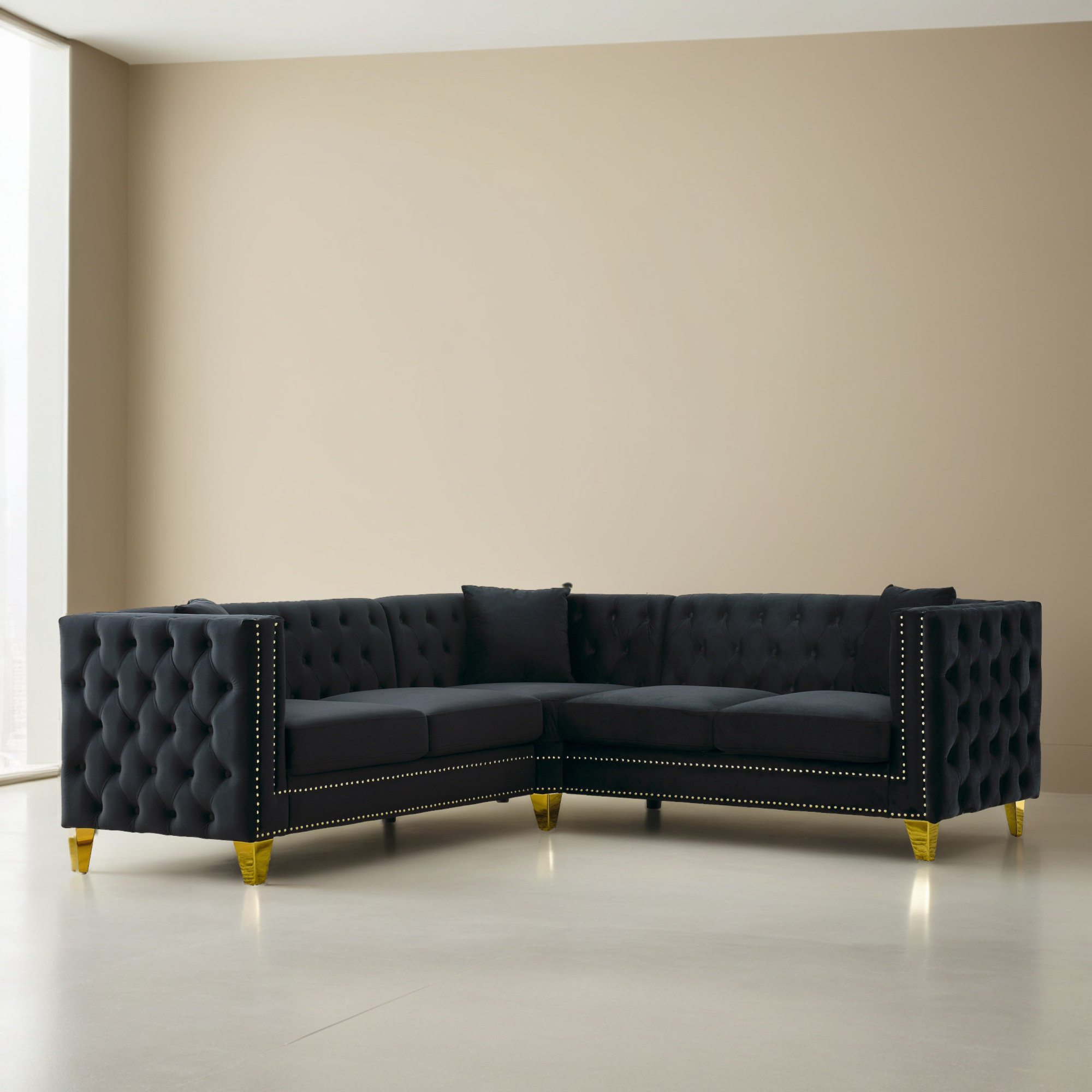 L Shape Corner Sofa Set Modern Luxury Minimalism Glam Style Sectional ...