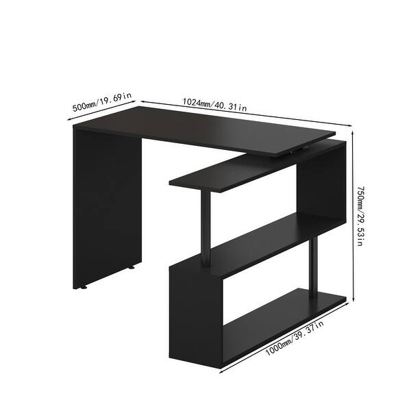Home Office L-Shaped Rotating Computer Desk - Black