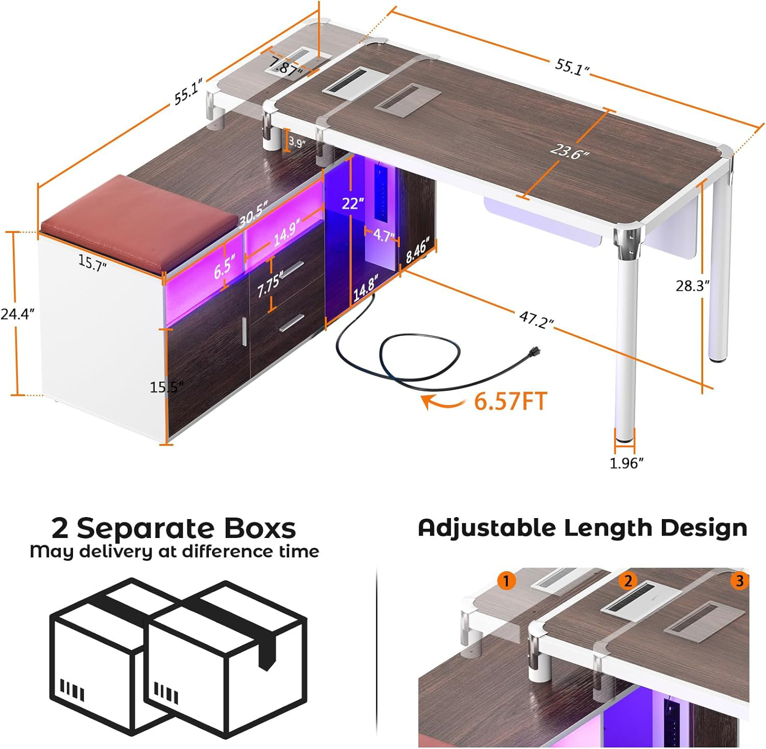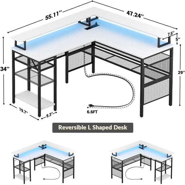 Buy Rolanstar Reversible L Shaped Computer Desk with Power Outlet & LED ...