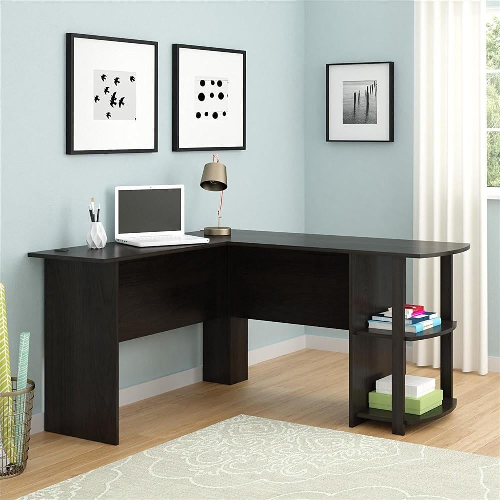 Home Spiral L-shaped Learning Computer Desk Black With Storage Shelf ...