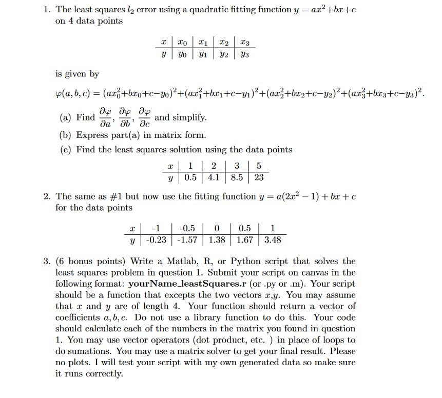Solved = 1. The least squares l2 error using a quadratic | Chegg.com