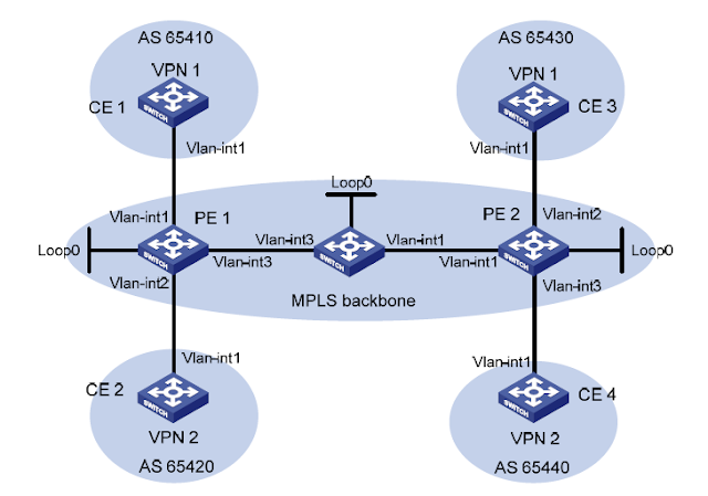 The topology design for the MPLS L3VPN | Download Scientific Diagram