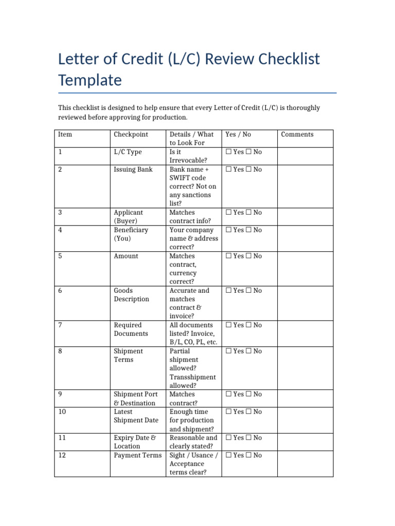 How to Check an LC | Export LC Check | Letter of credit Checklist ...
