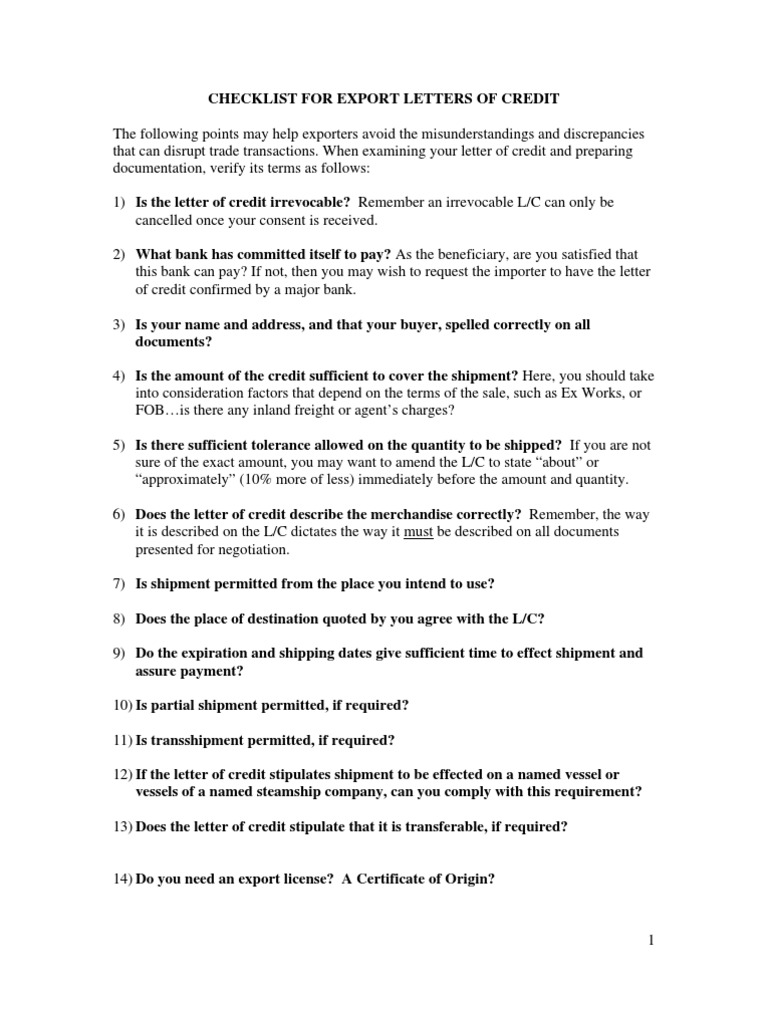 Checklist For Export Letters of Credit | PDF | Letter Of Credit ...