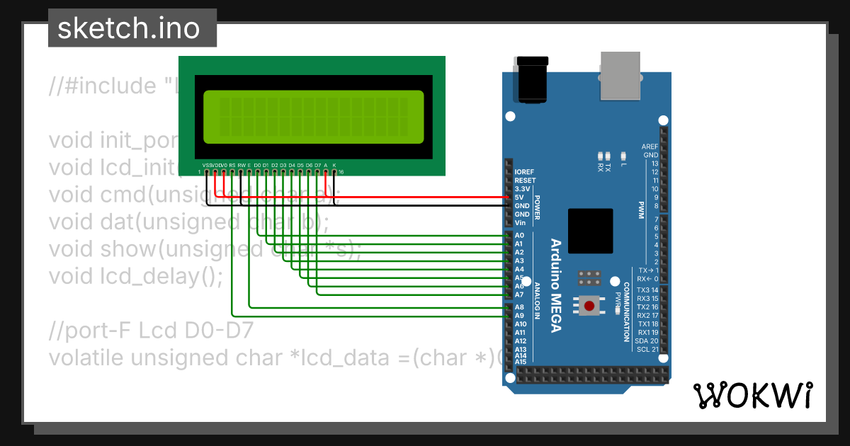 LCD 16x2 Pointer Strings 01 - Wokwi ESP32, STM32, Arduino Simulator