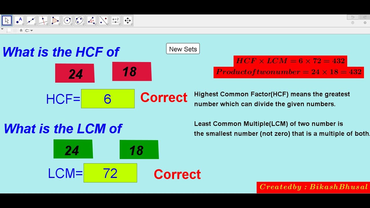 How to find the HCF and LCM using GeoGebra // Created by Bikash Bhusal ...
