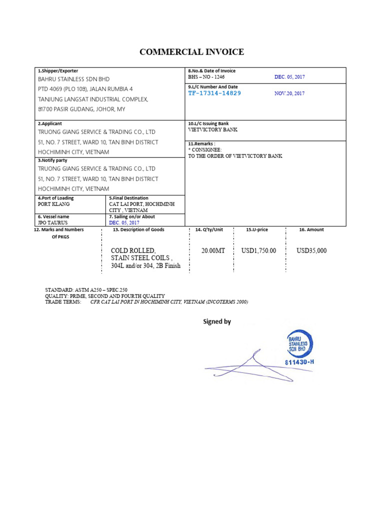 Commercial Invoice - L/C Number And Date Không sai số L/C (Chỉ sai ngày ...