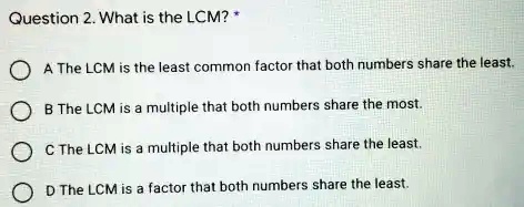 SOLVED: Question 2. What is the LCM? A The LCM is the least common ...