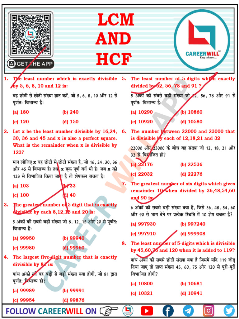HCF and LCM Questions With Solutions | PDF | Factorization | Discrete ...
