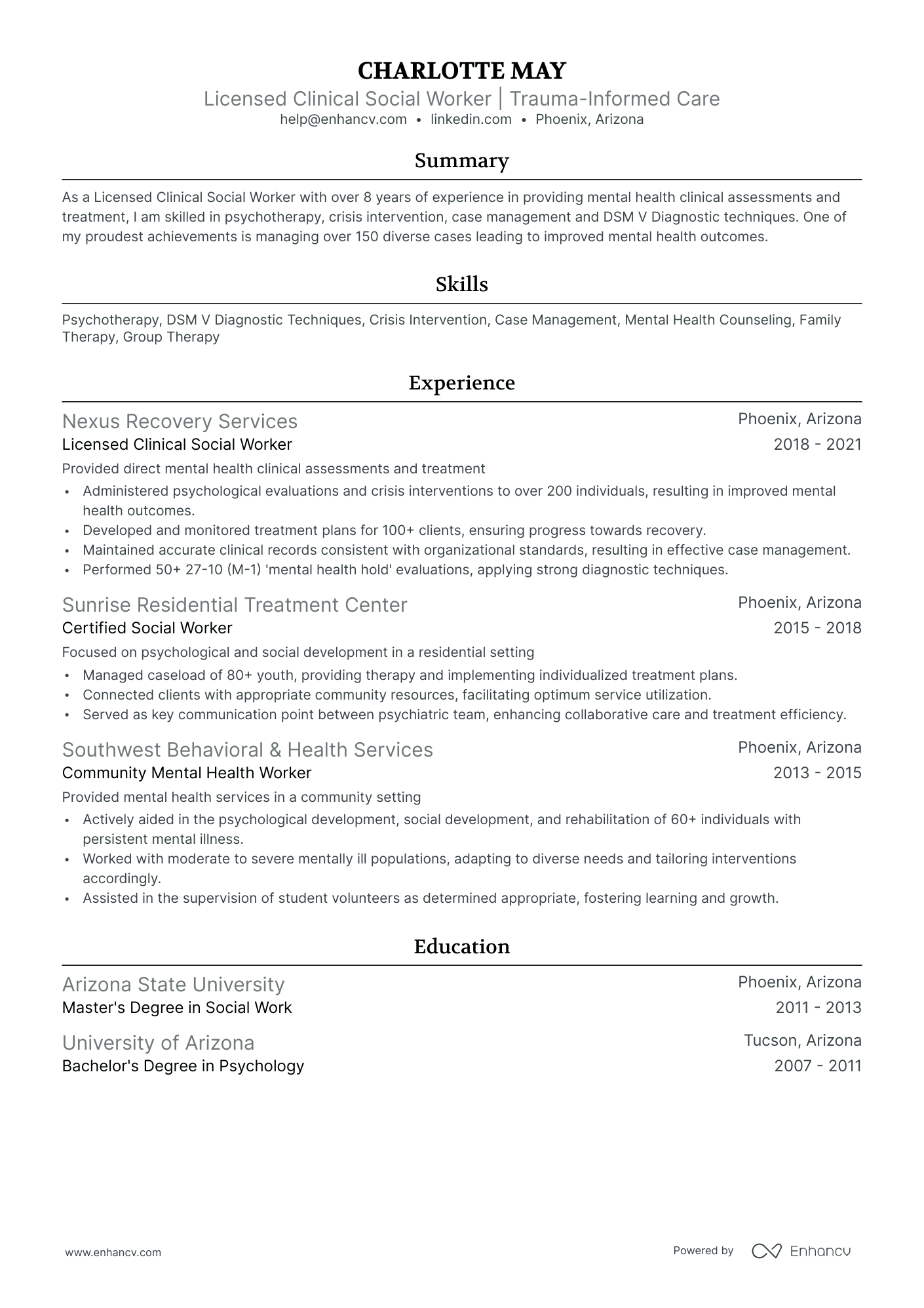 Licensed Clinical Social Worker Resume (CV) Example and Writing Guide