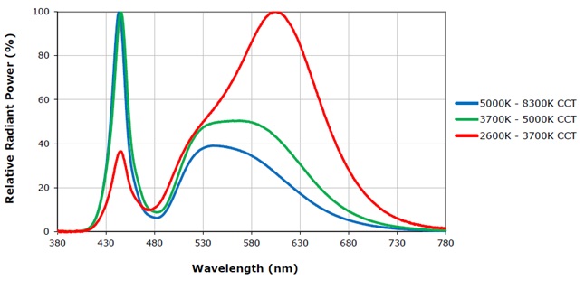 LED emission spectra Emission spectra of the three LEDs arrays measured ...