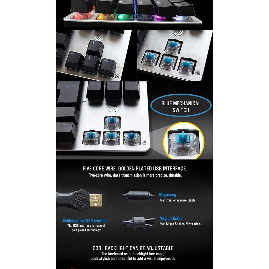 Bàn phím cơ blue switch HP GK200 loại 87 phím led rainbow - hơn 20 chế ...