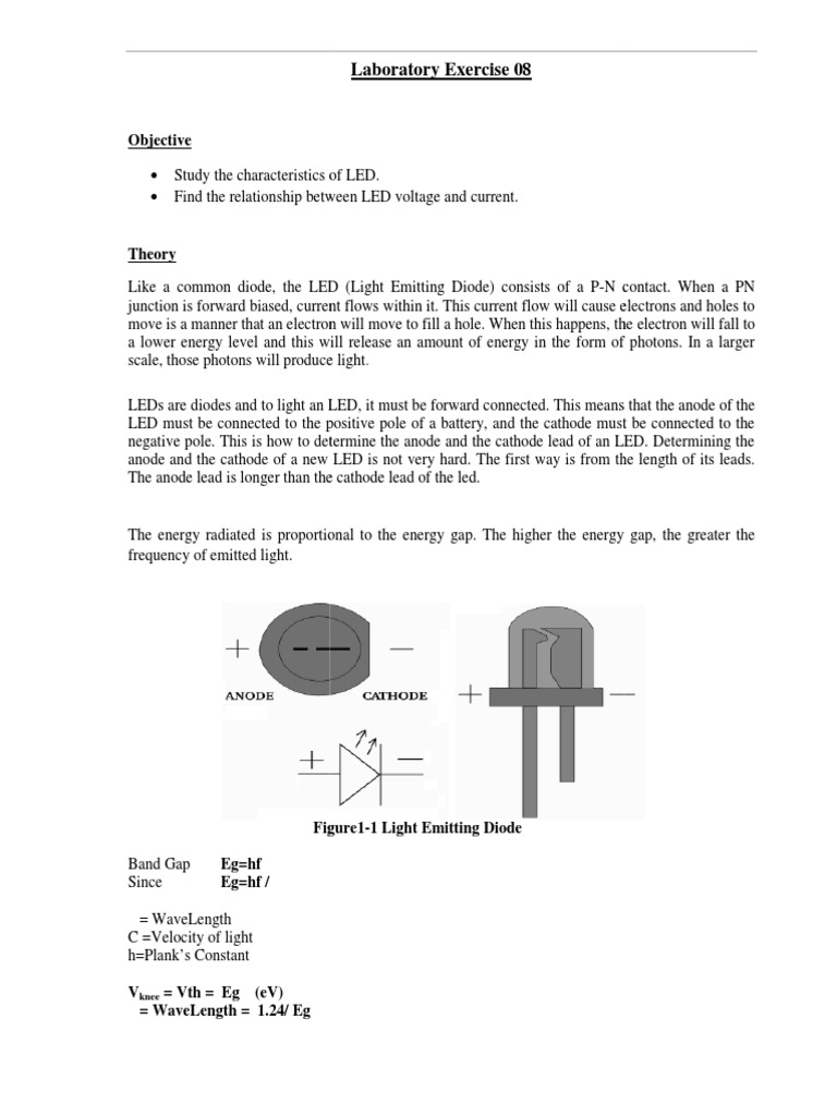 LED Characteristics Lab | PDF | Cathode | Light Emitting Diode