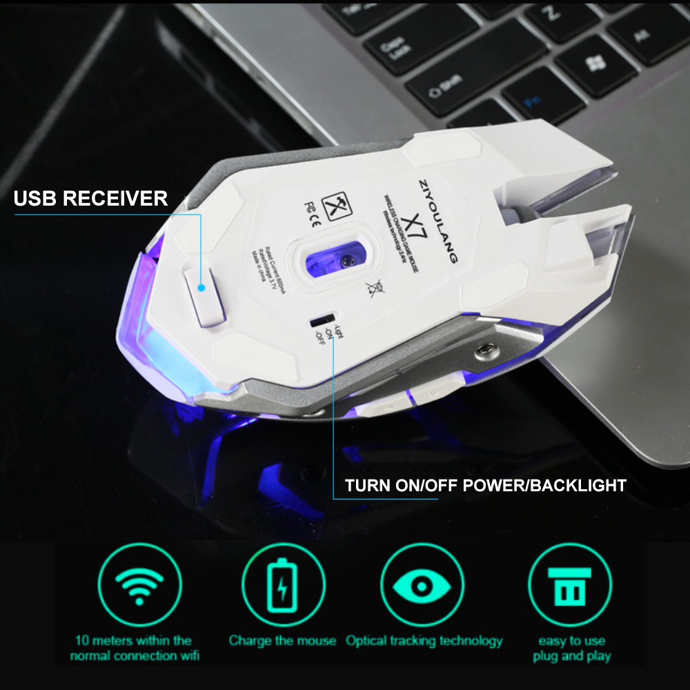 Wireless Gaming Mouse Rechargeable USB 2.4G RGB Backlit Computer Mouse ...