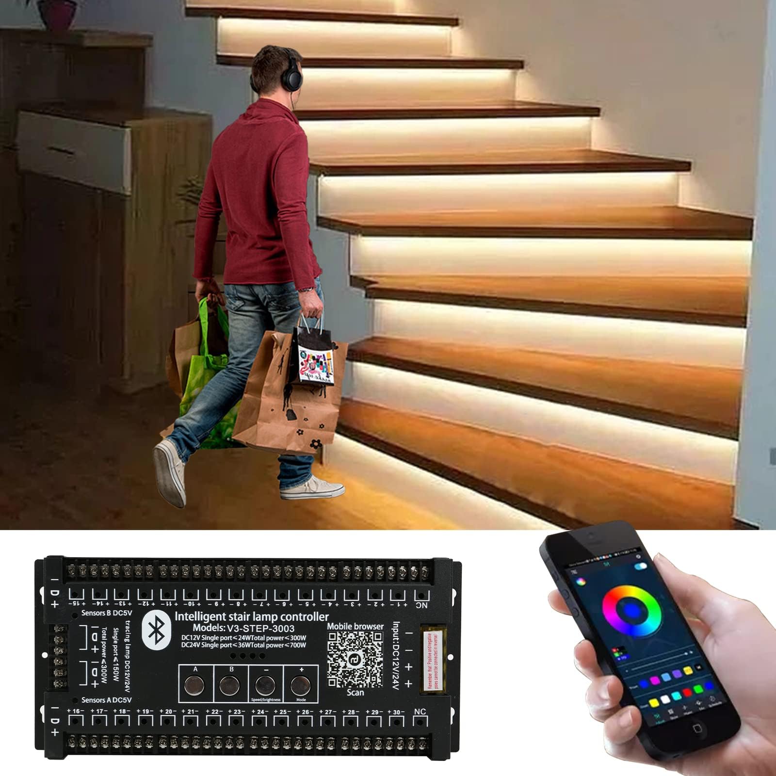 Srora LED Stair Light Controller with Motion Sensor, 28 Steps Indoor ...