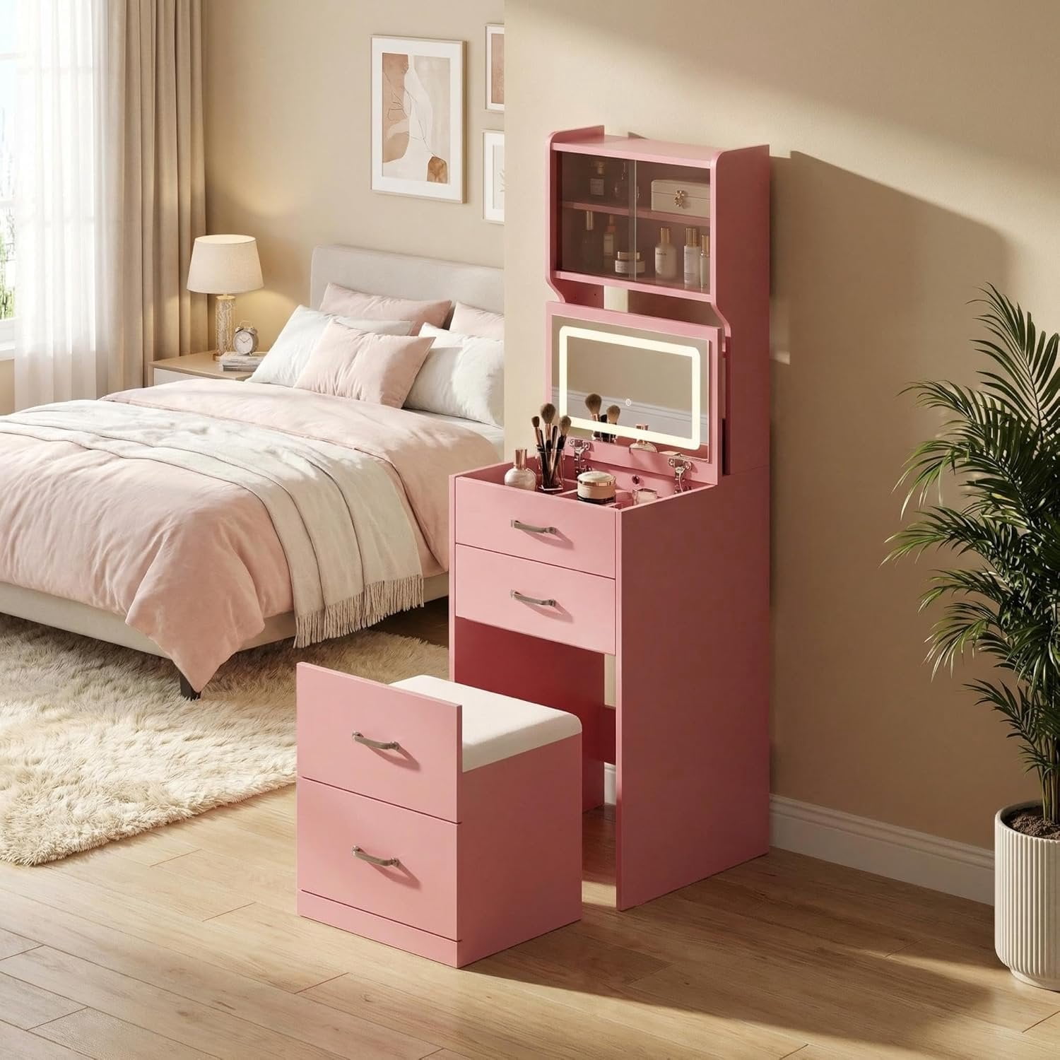 3 in 1 Desk with Flip Top Mirror, Compact Makeup Set with 3 Color LED ...