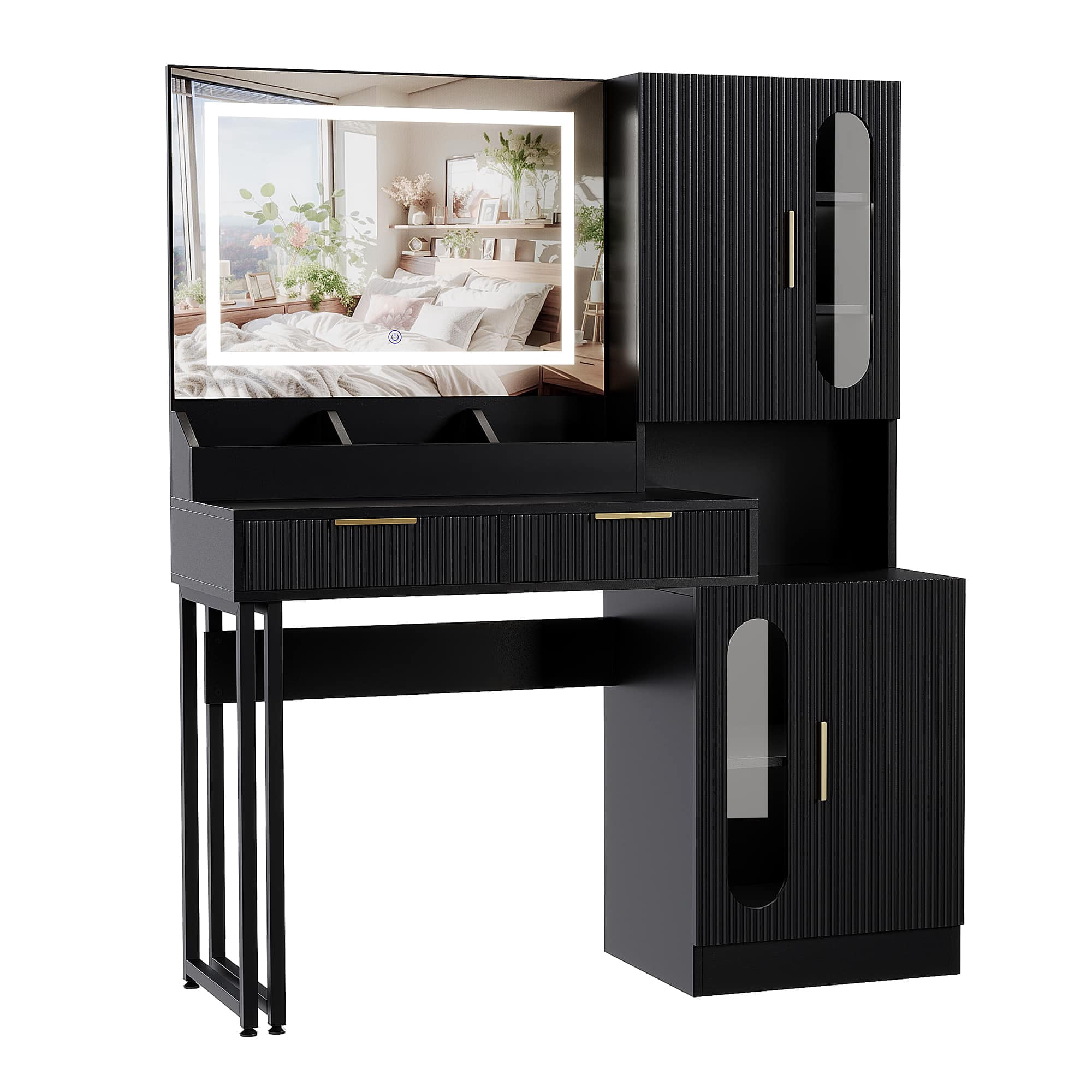 EastVita Fluted Makeup Vanity Desk with LED Lighted Mirror Built-In ...