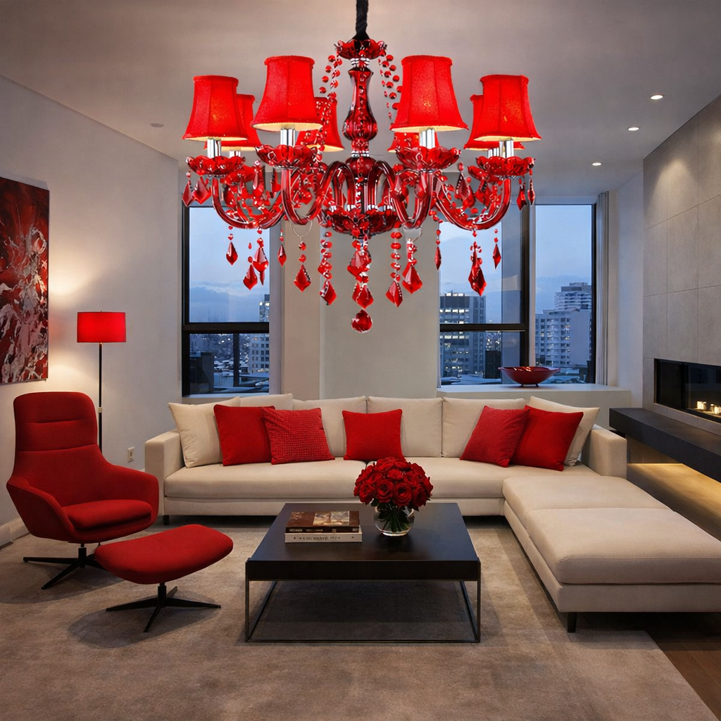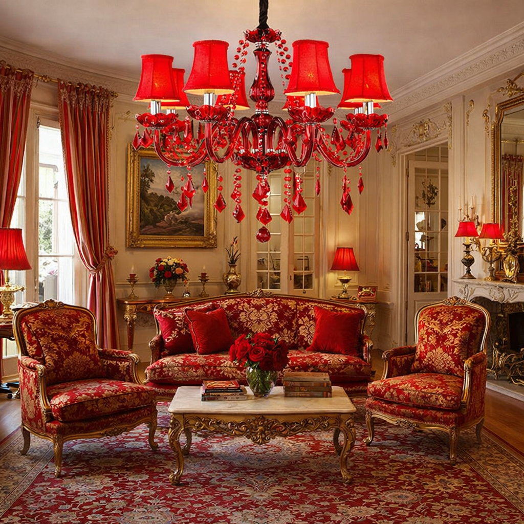 8 LIGHT Red GLASS ITALIAN CHANDELIER LIGHT FOR DINING HALL