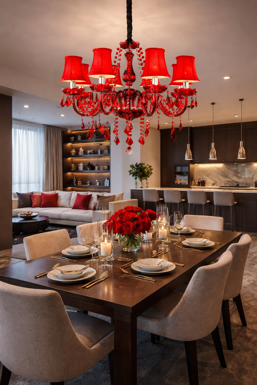 Home › 8 LIGHT Red GLASS ITALIAN CHANDELIER LIGHT FOR DINING HALL